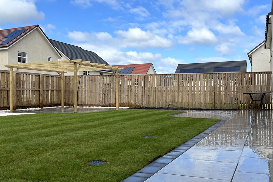 A huge garden transformation for this client’s back garden including a large new patio area with pergola.