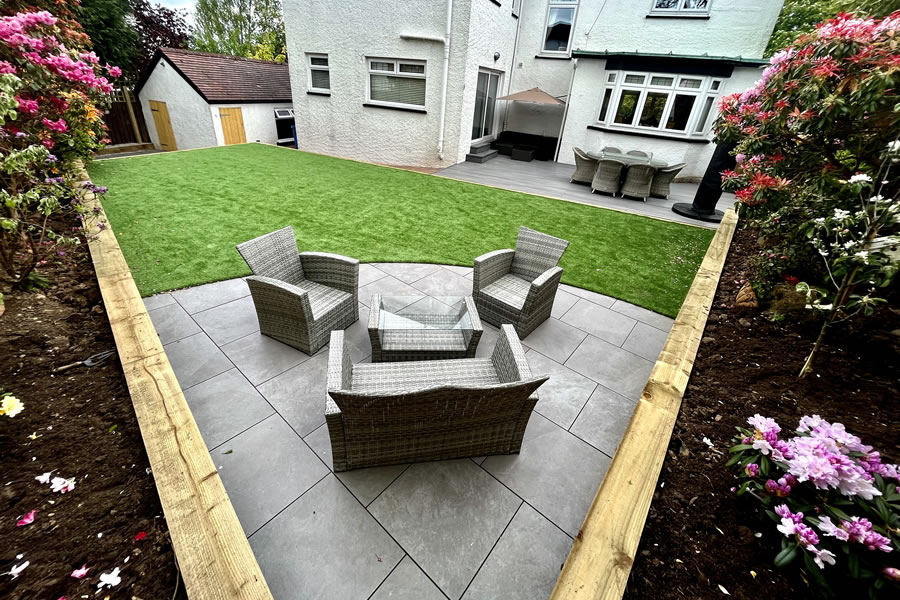 The garden also includes artificial grass, raised beds and a seperate seating area in the garden's sun trap. Overall, the design transformation of this space has created a new and modern garden that is sleek in design and filled with functionality suited to the clients’ needs.