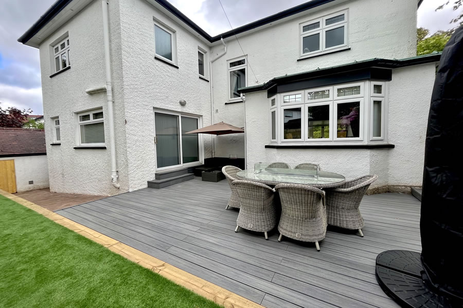 A massive overall garden transformation for this client’s back garden including a large new decking space for maximum dining/entertaining.